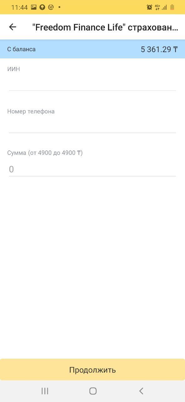 Сақтандыру полисін мобильді теңгеріммен алу үшін, «Төлемдер» бөлімінде «Банктер және қаржы» бөліміне өтіп, «Freedom Finance Life COVID-тен сақтандыру» бабын табу қажет. Ашылған жолда ЖСН-ді және сақтандыру полисінің сілтемесі бар SMS-хабарлама келетін байланыс нөмірін көрсету керек. Содан соң полистің құнын жазып, оны төлеу қажет. Полистің құны – 4900 теңге. Ең көп сақтандыру төлемі – 1 000 000 теңге. Сақтандыру мерзімі – 6 ай.