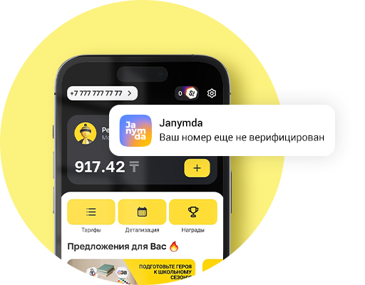 Согласно новым требованиям Закона «О связи», регистрация номеров теперь возможна только с помощью биометрической идентификации. Пройдите биометрию в мобильном приложении Janymda — и Ваши данные будут в кибербезопасности!